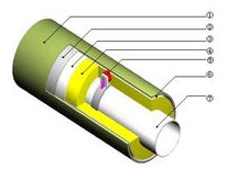 產(chǎn)品執(zhí)行中華人民共和國(guó)城鎮(zhèn)建設(shè)行業(yè)標(biāo)準(zhǔn)CJ/T 114-2000和CJ/T 115-2001標(biāo)準(zhǔn)。 一種是由輸送介質(zhì)的鋼管、防腐外套鋼管以及鋼管與外套鋼管之間填充的超細(xì)玻璃棉組合而成,也可采用石墨、硅鈣瓦管殼及填充聚氨酯泡沫復(fù)合而成。鋼套管(鋼套鋼)埋設(shè)技術(shù)是一種防水、防漏、抗?jié)B、抗壓和全封閉的埋設(shè)新技術(shù),是直埋敷設(shè)技術(shù)在地下水位較高地區(qū)使用的一次較大突破。直埋管道的保護(hù)管的首要問(wèn)題是嚴(yán)密防水的可靠性,此外要有良好的機(jī)械強(qiáng)度,鋼套管由于強(qiáng)度高采用焊接連接,防水的密封性能可靠性十分高,另外,其耐高溫性能也是其它外保護(hù)管所不能比擬的。在地下水位高的地區(qū),為保證地下水不影響蒸汽直埋管道的正常運(yùn)行,外保護(hù)層最好采用堅(jiān)固、密閉的鋼管外殼。 保溫結(jié)構(gòu) 鋼套鋼保溫管保溫結(jié)構(gòu)依據(jù)滑動(dòng)方式不同分為 :內(nèi)滑動(dòng)式與外滑動(dòng)式。1、內(nèi)滑動(dòng)式:保溫結(jié)構(gòu)由工作鋼管、硅酸鋁、減阻層、微孔硅酸鈣、隔熱層、不銹鋼緊固鋼帶、鋁箔反射層、聚氨酯保溫層、外套鋼管、外防腐層組成。 2、外滑動(dòng)式:保溫結(jié)構(gòu)由工作鋼管、玻璃棉保溫隔熱層、鋁箔反射層、不銹鋼緊固帶、滑動(dòng)導(dǎo)向支架、空氣保溫層、外護(hù)鋼管、外防腐層組成。 鋼套鋼保溫管結(jié)構(gòu)圖:(見右圖) |