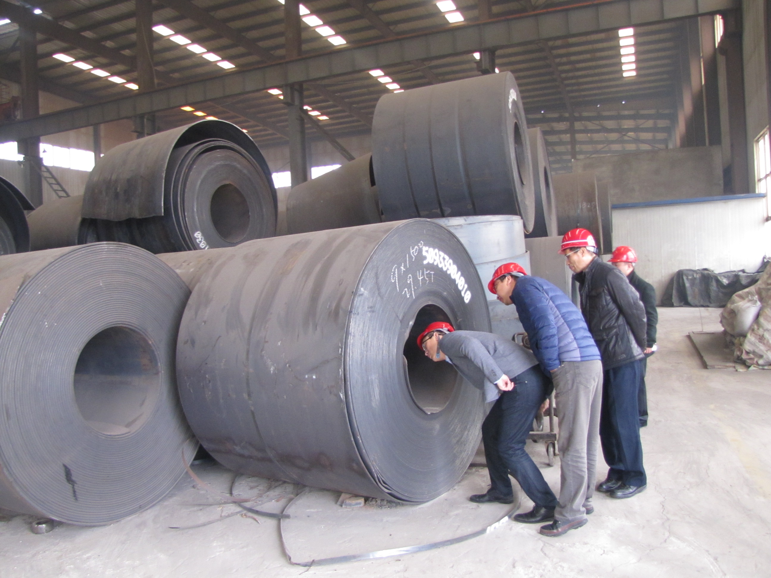 相關(guān)領(lǐng)導(dǎo)實(shí)地察看了雙面埋弧焊接鋼管的外觀及卷板質(zhì)量